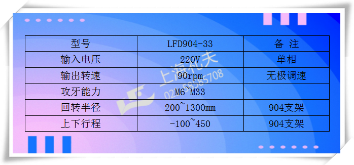 3、 LFD904-33型電動攻絲機 上下活動行程:185mm-400mm。