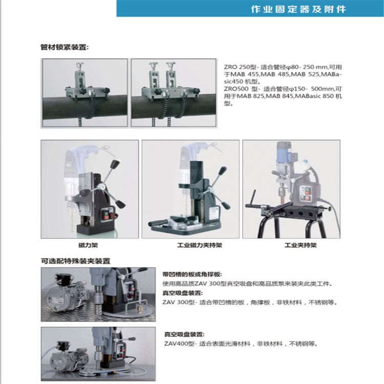 介紹:我們的輕型磁力鉆孔機MAB 100K的下一代型號現在配有KEYLESS鉆夾頭。無鑰匙鉆夾頭是一種快速簡便的方法,可將環形刀具連接到Weldon刀桿上,無需任何螺釘。輕巧的MAB 100K磁力鉆床僅為9.9 Kg。重量輕,配有19毫米Weldon無鑰匙心軸,完全內部布線等等。輕型磁力鉆床MAB 100K的優勢在于它是一個理想的機器,可以在偏遠的位置,塔架,橋梁,PEB結構等進行鉆孔,因為它的重量最輕。 MAB 100K磁力鉆床在德國制造,并提供國際保修。